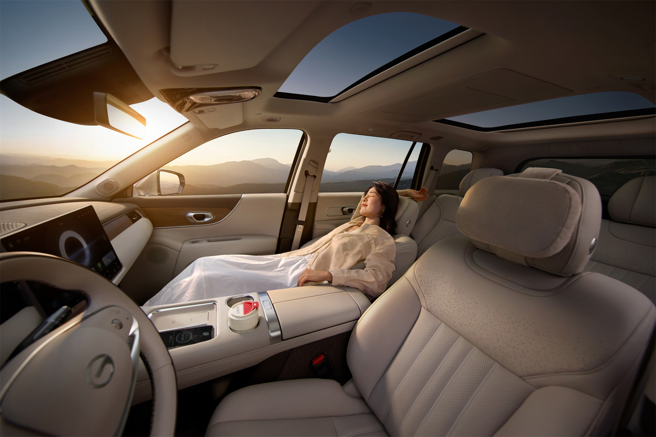 二排也沒有忽視,5座版靠背能調到137度,6座版更是能到148度,還配備了小桌板,孩子在后排寫作業、吃東西都方便,真正做到了“每一座都是頭等艙”。
