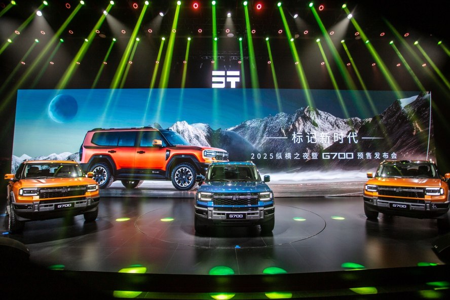 發布會現場不僅公布了G700的預售價格,還上演了令人震撼的越野性能展示。G700在舞臺上攀爬了一個45度的坡度后,駛入水箱,隨后水箱注水至車輛浸泡深度達到1.2米,排水后車輛順利啟動并成功駛出水箱,展現了其卓越的防水性能與穩定性,贏得了在場觀眾的熱烈掌聲。這一展示直觀地體現了G700在復雜地形下的優異表現,確保了駕駛的安全性與可靠性。
