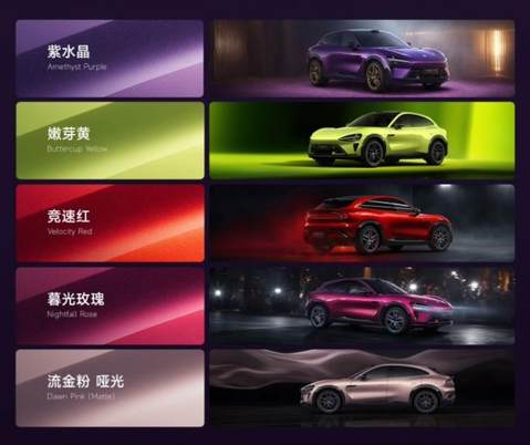 說(shuō)是嘗試,小米汽車(chē)的準(zhǔn)備卻是非常充分。這次小米汽車(chē)的定制服務(wù)提供了五種專(zhuān)屬的顏色,用我自己的話總結(jié)就是勞斯萊斯紫、法拉利紅、蓮花黃、保時(shí)捷粉,以及一個(gè)比較獨(dú)特的暮光玫瑰,類(lèi)似于玫瑰紅色。而且這些專(zhuān)屬顏色都采用了更精湛的涂裝工藝,比如最貴的選裝色紫水晶就用了雙層清漆工藝和4C3B工藝,擁有更高級(jí)的質(zhì)感。