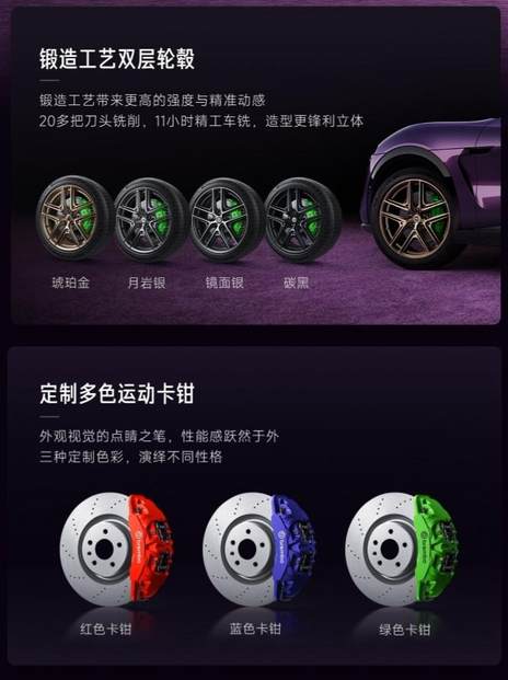 內(nèi)飾方面的定制同樣不貴,包括了Alcantara在內(nèi)的材質(zhì)和工藝也只要1.5萬(wàn)元,即便是選裝真木飾板也就再多花3000元。另一個(gè)大件則是21英寸鍛造輪轂,四個(gè)樣式都是定價(jià)2萬(wàn)。此外包括小米Logo、迎賓燈、拉花這些都是兩三千元。