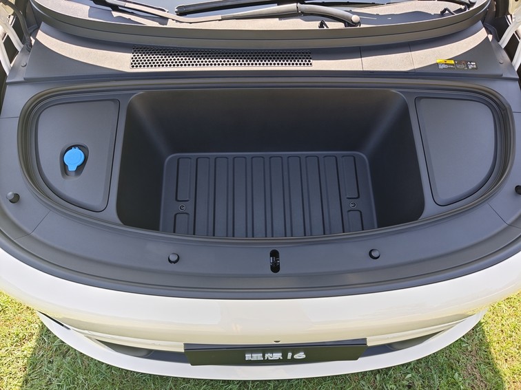 10、 彩蛋來自于前備廂,支持敲擊兩下,會電彈開啟,比較新奇的體驗。前備廂空間目測能放下一個20英寸登機箱,也可以直接用水沖洗。理想i6能夠支持前備廂是因為i6的L113比i8更長,前面可以掏出更大的空間。