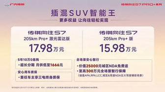 同時,作為向往系列第一車,傳祺向往S7全新Pro+系列售價15.98萬元起,更帶來傳祺史上最給力的金融政策:5年10萬0息,月供低至1666元,還有價值25000元城區(qū)NDA免費送、至高300萬元全場景智行保障,首任車主還可享三電終身質(zhì)保,真正讓“向往的生活”觸手可及。