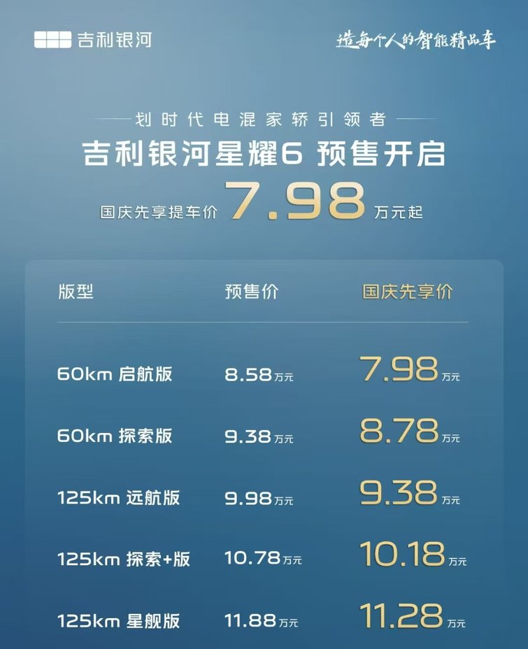 吉利銀河星耀6先享價7.98萬起,正式售價會有多大驚喜?