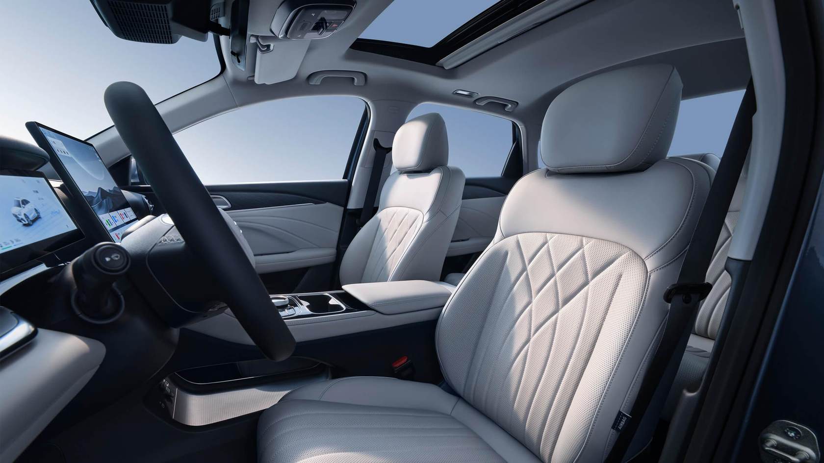 啟航版僅有16英寸輪轂,沒有主動剎車、定速續(xù)航,不帶天窗,方向盤為塑料,但保留了六安全氣囊、LED大燈、14.6英寸的屏幕、倒車影像。遠航版在此基礎上多了單目攝像頭的L2,有了液晶儀表以及更大的電池,但價格高出1.4萬元。