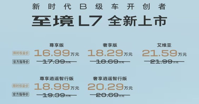 售價16.99萬起,至境L7終結B級車市場的舊格局
