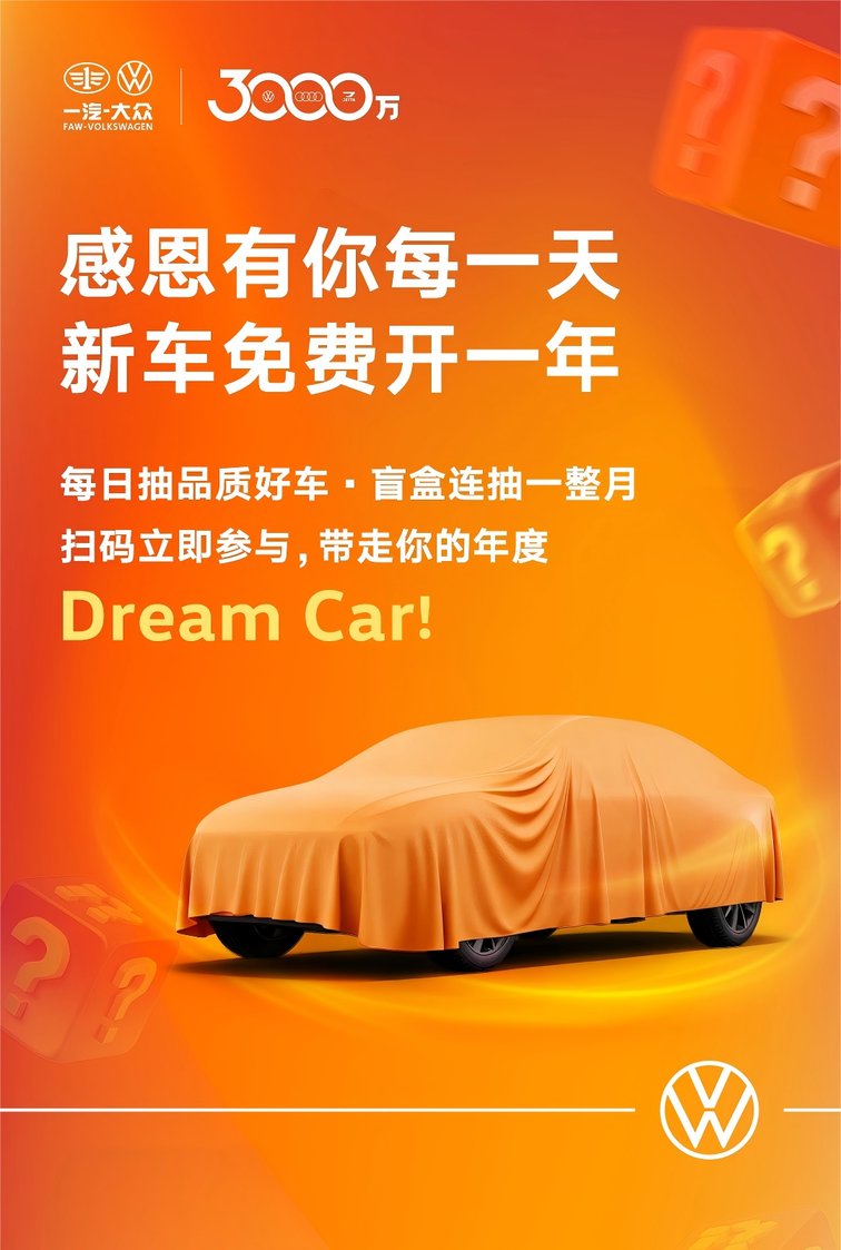 新車免費開一年 一汽-大眾大眾品牌推出3000萬用戶感恩禮