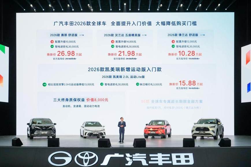 廣汽豐田發布2026款新車型,入門價值大幅提升!